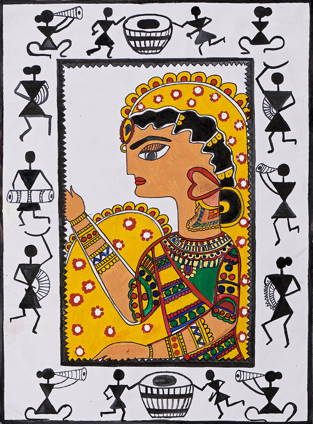 畫面以設計手法呈現,主題突出。四周黑白的人像圖案,襯托金碧輝煌的0神,洋溢著生動有力的氣氛。