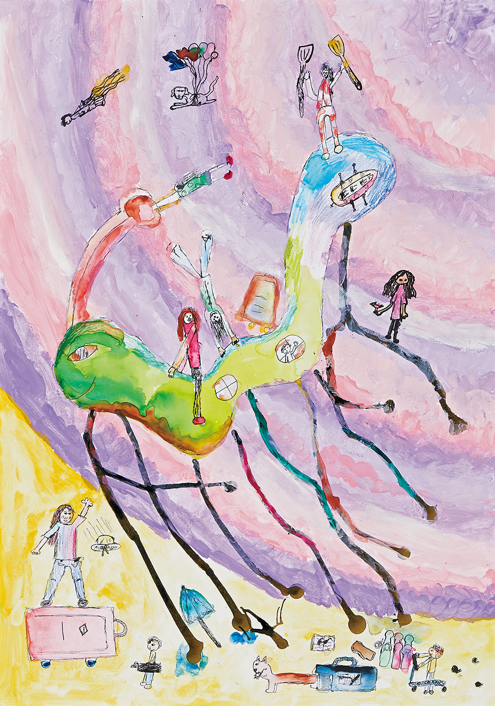 兒童畫天真活潑有趣,生長的環境自由天真,以背景顏色凸顯主題內容。