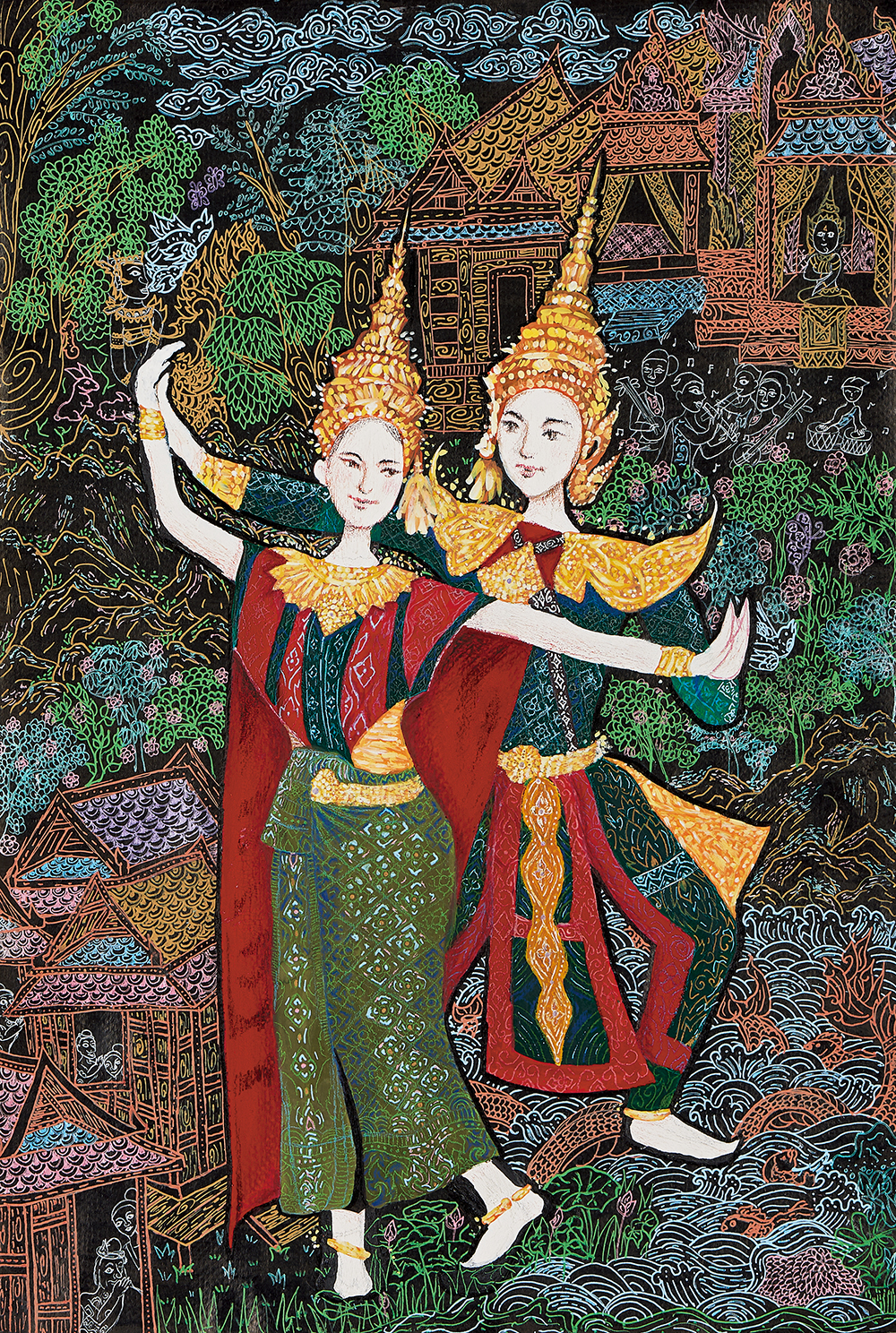 溫潤典雅的色彩,流利多變的線條,彰顯民族特色裝飾和曼妙的舞姿,是一幅花心思的創作。