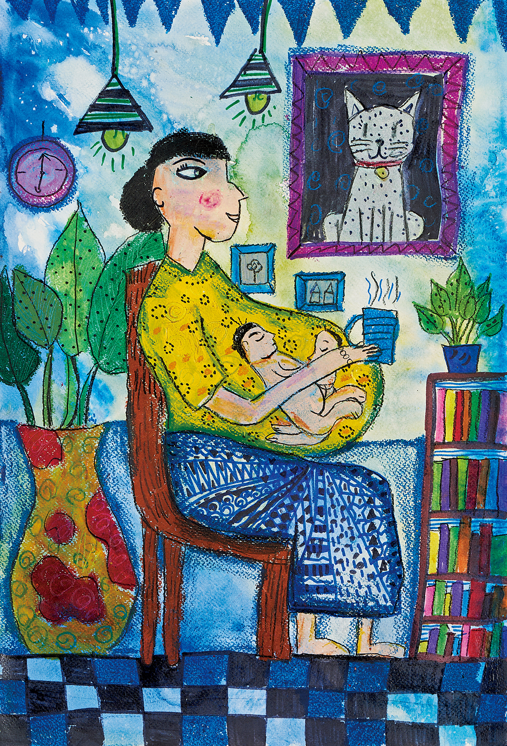 協調溫馨的冷色系把安置於圖中央的媽媽和孕育胎中的寶寶表現得更溫馨,更易喚起對媽媽的感念。佳作!