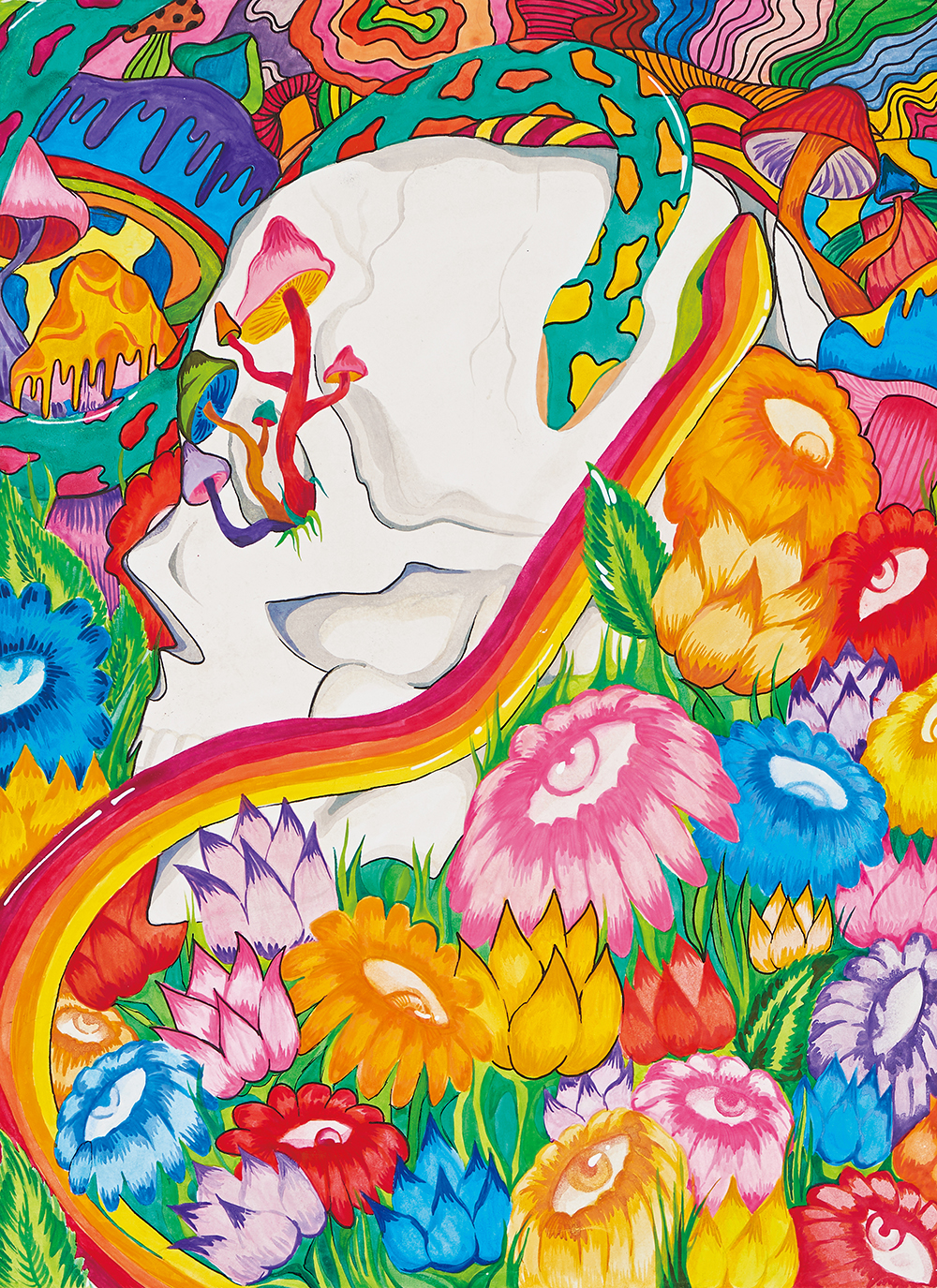 以構圖的疏密,以及色彩的彩度分佈的構圖安排,吸引了觀者對作者的秘密花園探索的慾望。