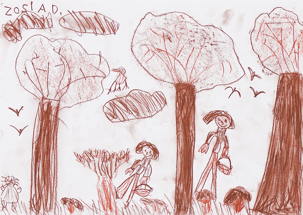 顏色一色完成作品。人物有趣,小鳥搭配畫面趣味性。