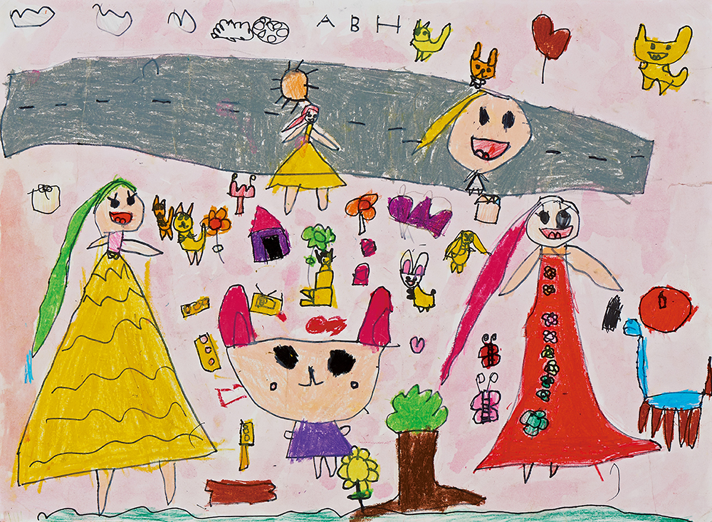 style of drawing, which truly reflects her feelings, joys, and socialization needs as a child.