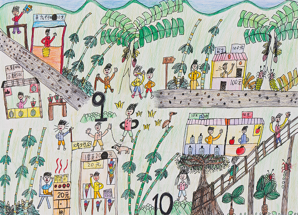 The artist's detailed depiction of the features of plants around the pathway reveals children's inner concern for the environment and culture. |