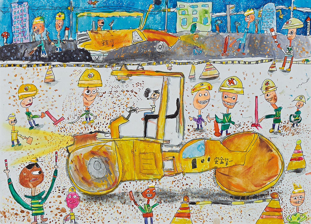 The artwork depicts a nighttime construction scene with a stable and beautiful composition.