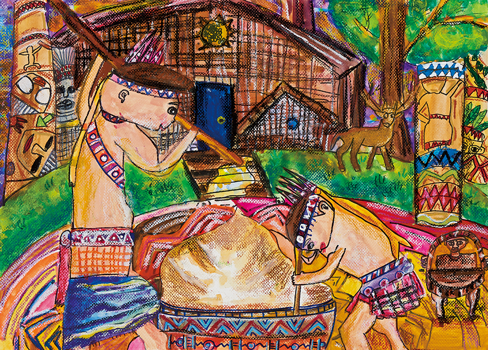 The tribal spirit is passed down sustainably, showcasing cultural totems from the perspective of middle school students. |
