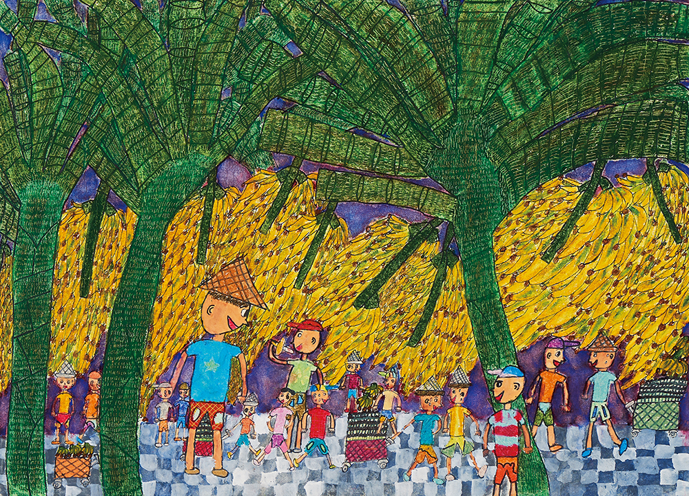 The banana plantation is laden with abundant fruits, filling both visitors to the orchard and busy workers with excitement. |