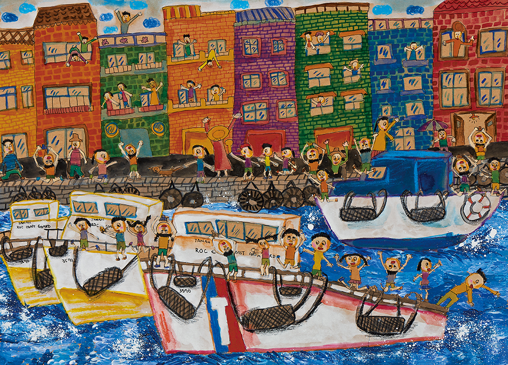 Has the artist seen the actual view of Zhengbin Fishing Port in a photo or a video? This is a meticulously depicted and thoughtfully crafted scene of the fishing port. Regardless of the medium, the artist has projected her imagination into this setting.