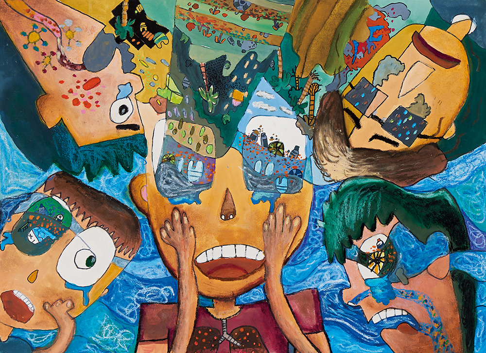 Through exaggerated facial expressions and the depiction of the world through their eyes, the content