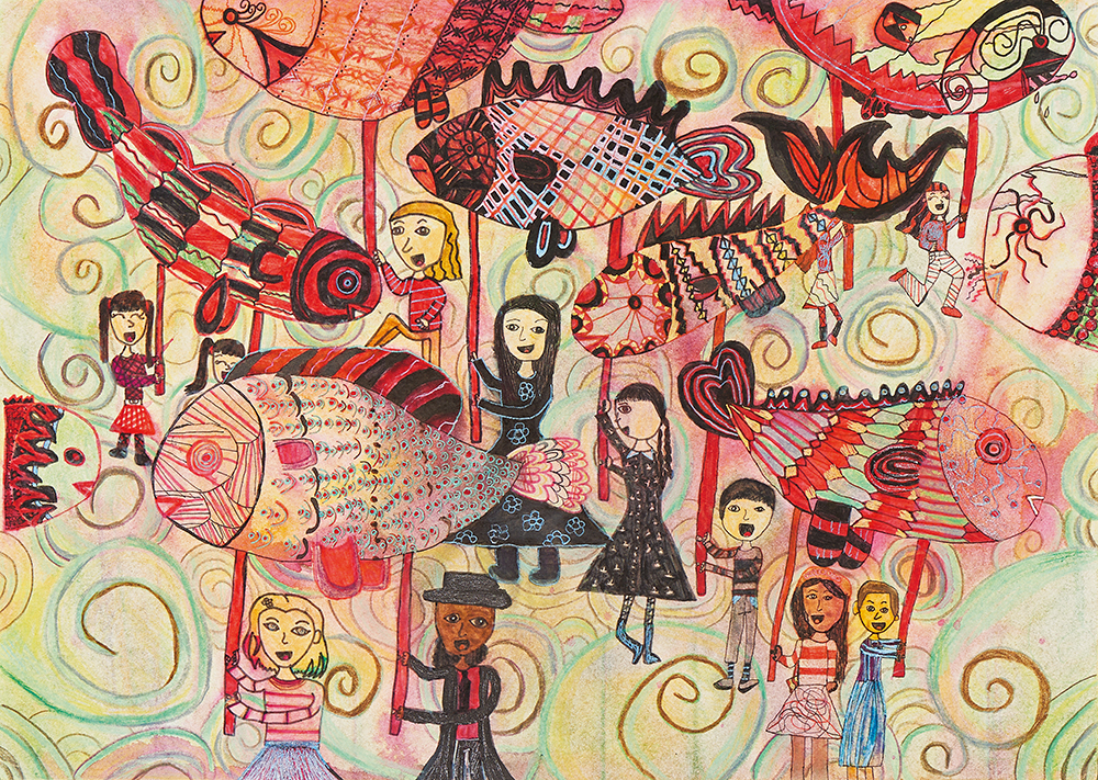 The artwork uniquely showcases the delicate and diverse motion and beauty of lanterns in multiple directions and installations.